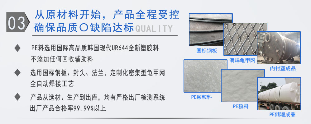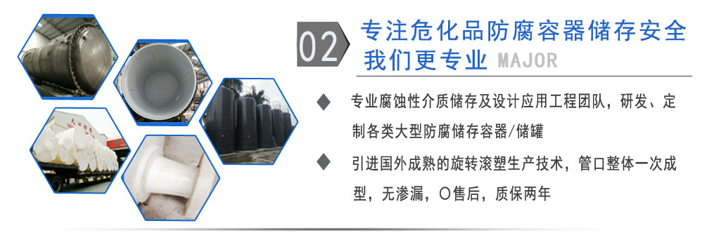 公司有鋼襯塑PE/PO、PE全塑、碳鋼、不銹鋼四大系列100多個(gè)品種,專(zhuān)注于常壓儲(chǔ)存容器生產(chǎn),其產(chǎn)品包括鋼襯塑儲(chǔ)罐、管口一體成型PE儲(chǔ)罐、碳鋼儲(chǔ)罐、不銹鋼儲(chǔ)罐、反應(yīng)釜、攪拌罐、離子交換柱、鋼襯PE/PO儲(chǔ)罐、塑料儲(chǔ)罐、鹽酸儲(chǔ)罐、硫酸儲(chǔ)罐等等。更大限度滿足廣大客戶的各種需求,同時(shí)可以根據(jù)客戶的需要加工定制各種防腐設(shè)備。